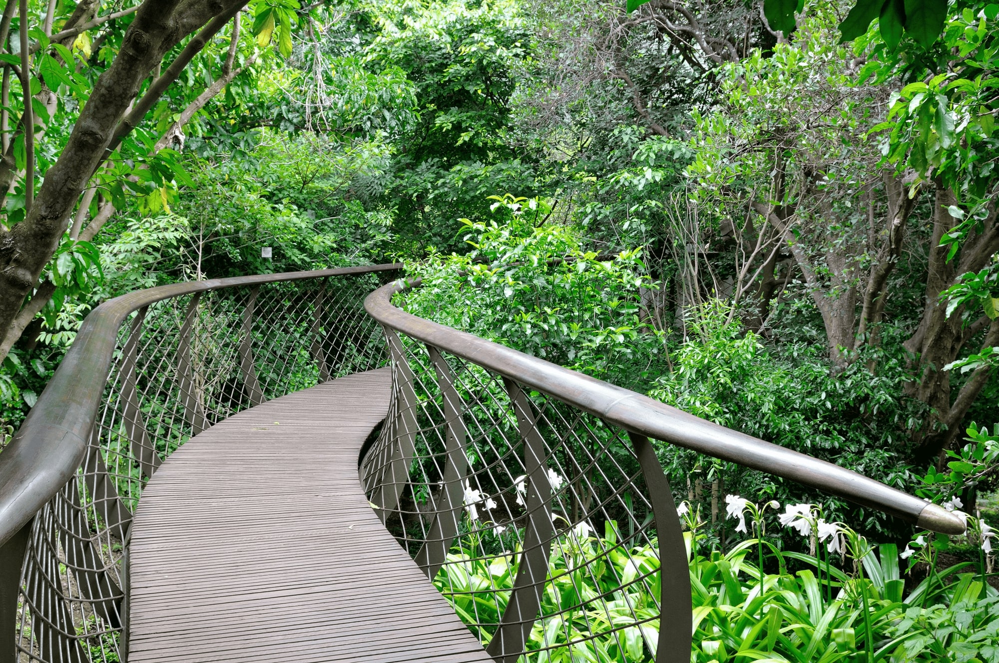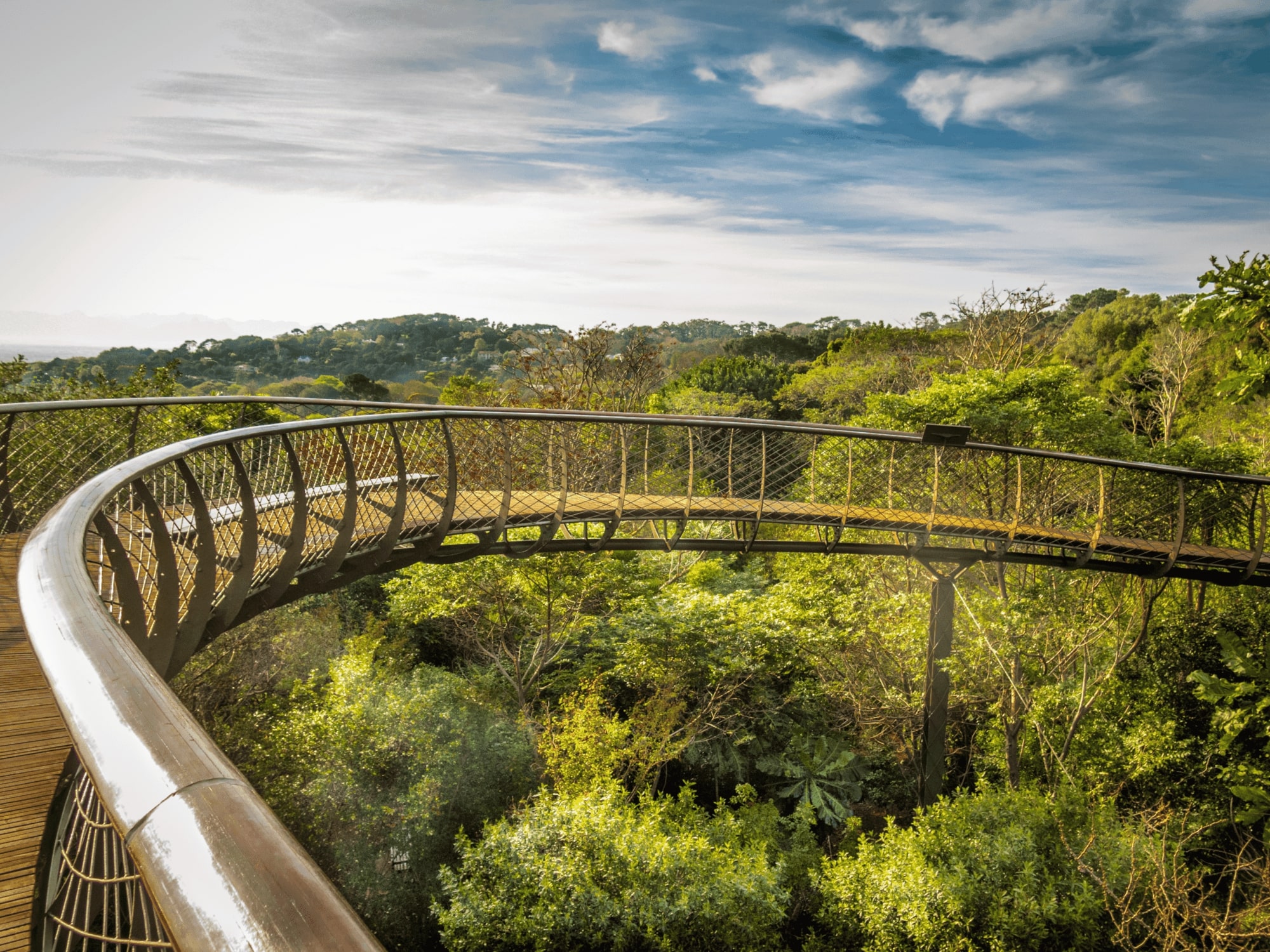 One of the highlights of the botanical gardens is the Centenary Tree Canopy Walkway, a giant raised walkway that gives visitors a unique perspective on the park’s scenic vistas. Rising to heights of around 12 meters, the 130 meter long aerial boardwalk was inspired by the skeleton of a snake, and weaves through the forest harmoniously following the contours of the landscape. Locally nicknamed the ‘Boomslang’, after a venomous Sub-Saharan snake, the tree top walkway is situated between the Protea Garden, the Cycad Amphitheater, the Concert Lawn, and Mathews Rockery in the heart of the botanical gardens.