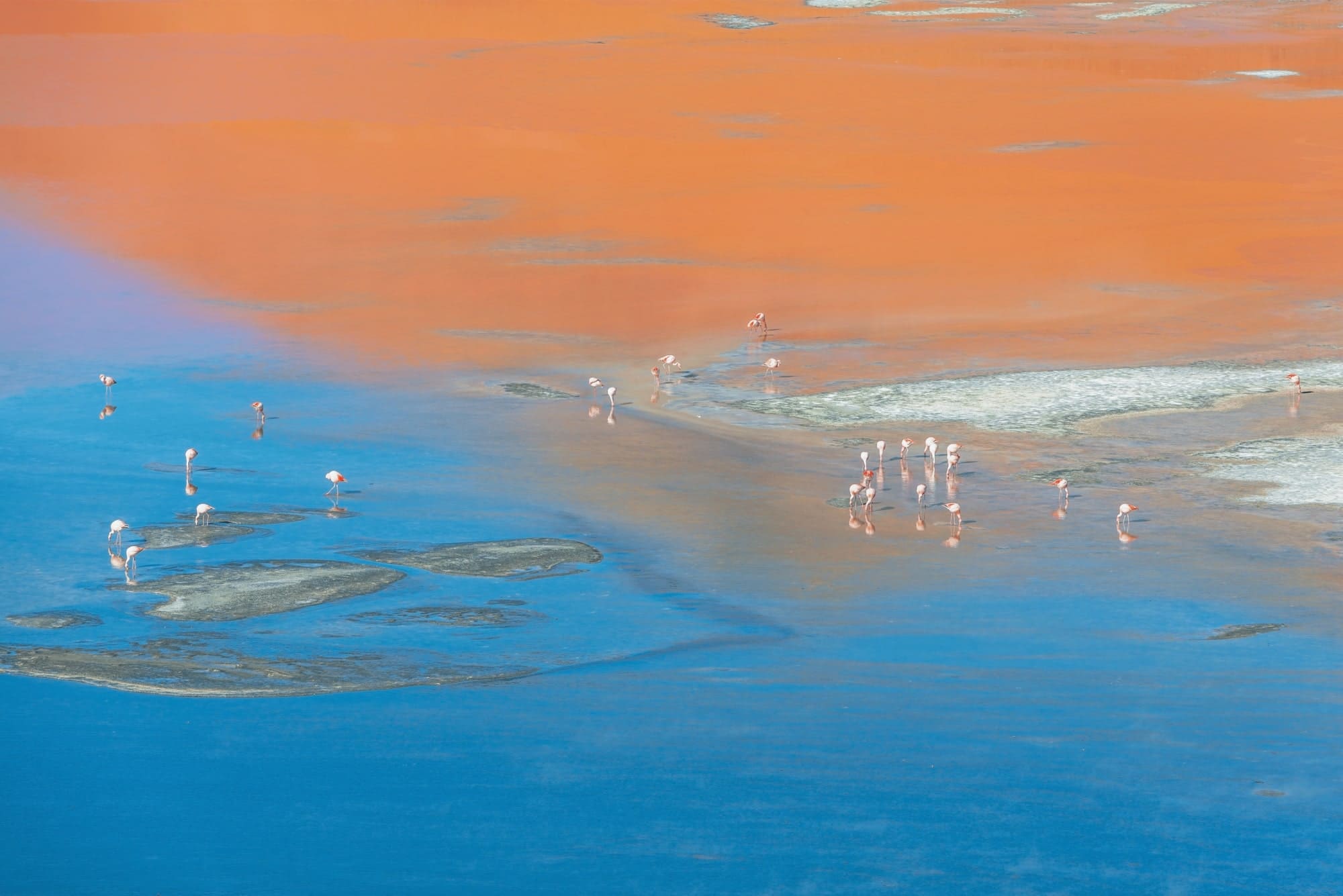 Located in Bolivia’s south western region of Altiplano, the lake is an important wetlands habitat for several species of flamingo. Attracted to the Laguna Colorada by the abundance of plankton in the salty waters, Andean, Chilean and James’ flamingos use the area as a breeding and nesting ground. In fact, it’s the flamingo’s unique diet of plankton from the salt lakes that partly accounts for the bird’s spectacular pink plumage!